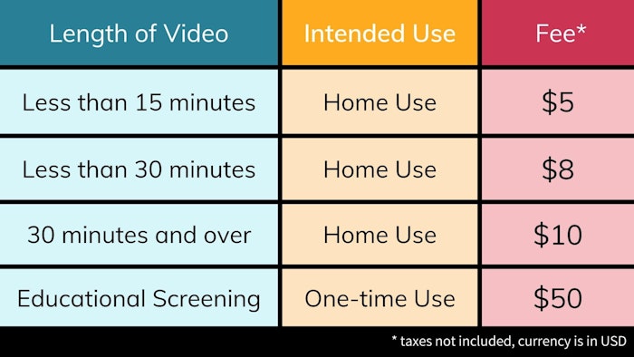 Moving Images is an educational distributor, our pricing is based on providing videos in digital streaming and DVD formats to educational and cultural institutions. The pricing level of $50 USD grants permission for a one-time educational screening.